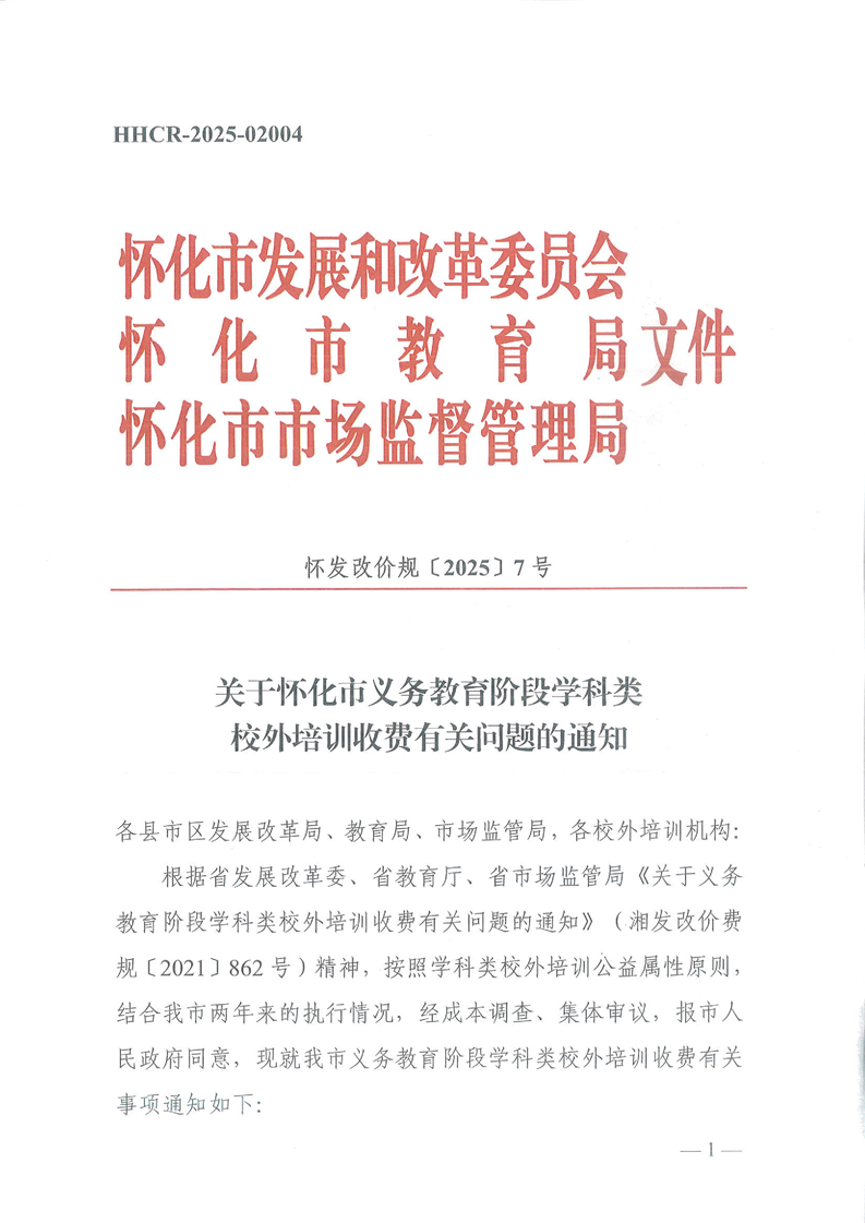 文號:懷發(fā)改價(jià)規(guī)〔2025〕7號