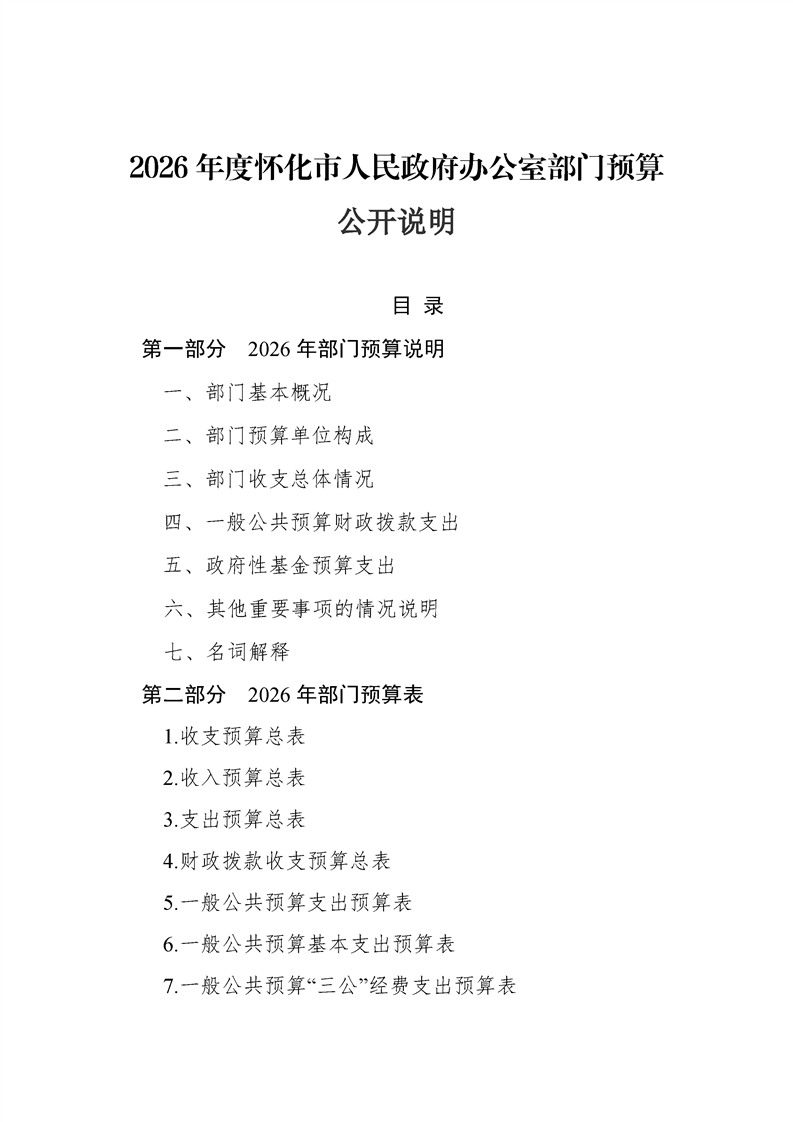 2026年度懷化市人民政府辦公室部門預(yù)算公開說明