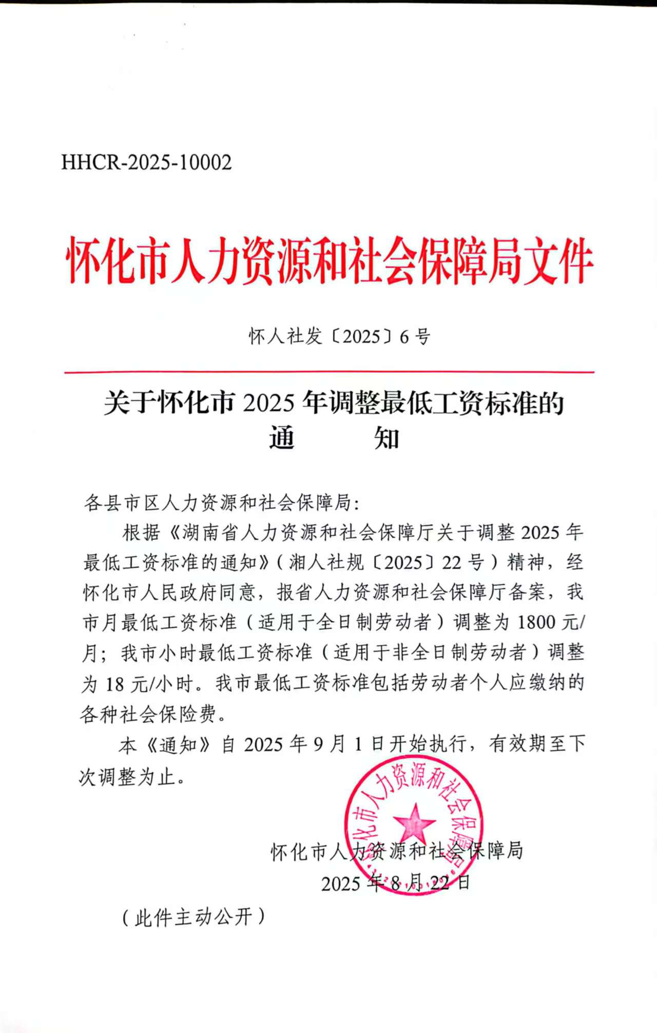 關(guān)于懷化市2025年調(diào)整最低工資標(biāo)準(zhǔn)的通知