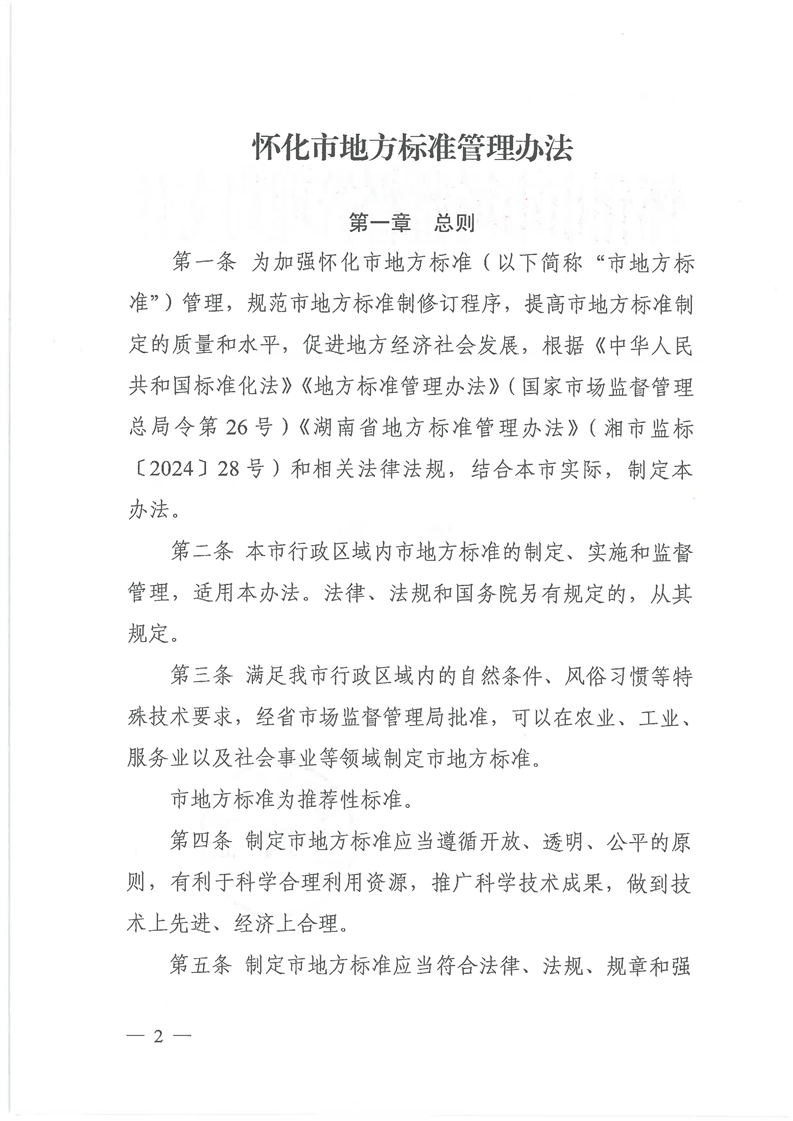 關(guān)于印發(fā)《懷化市地方標準管理辦法》的通知