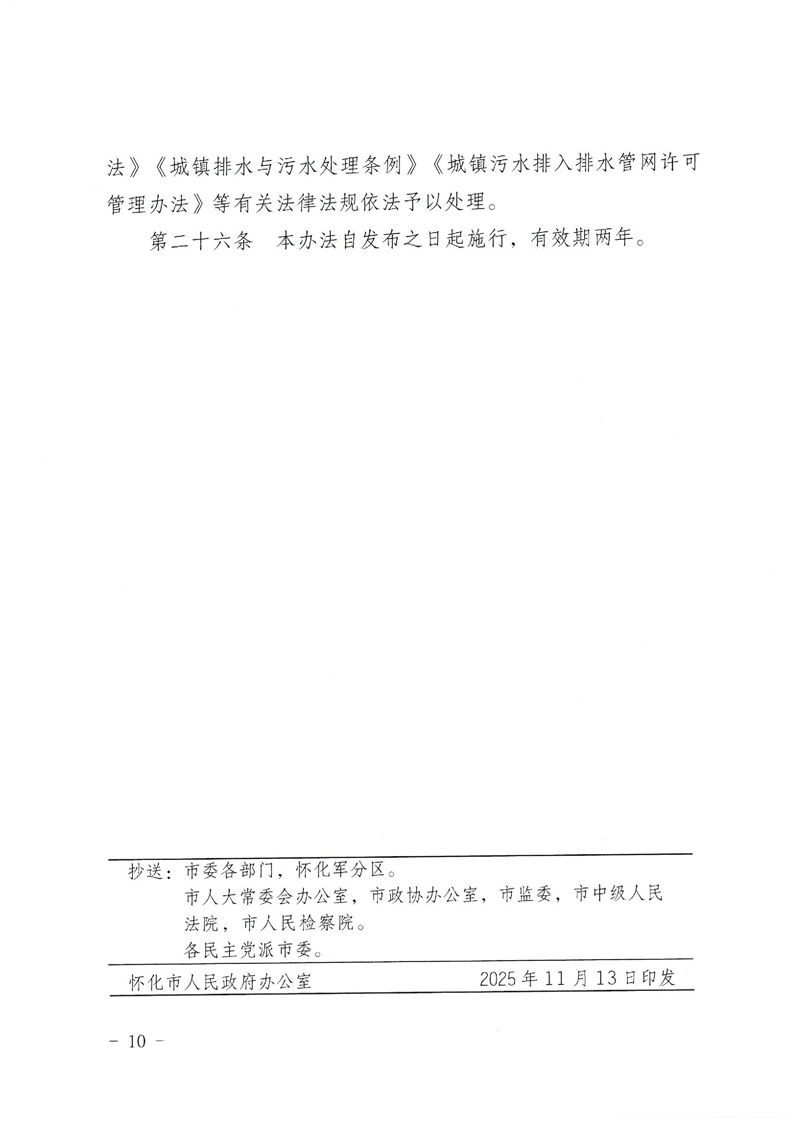 懷化市人民政府關(guān)于印發(fā)《懷化市城鎮(zhèn)排水戶分級分類管理辦法》的通知