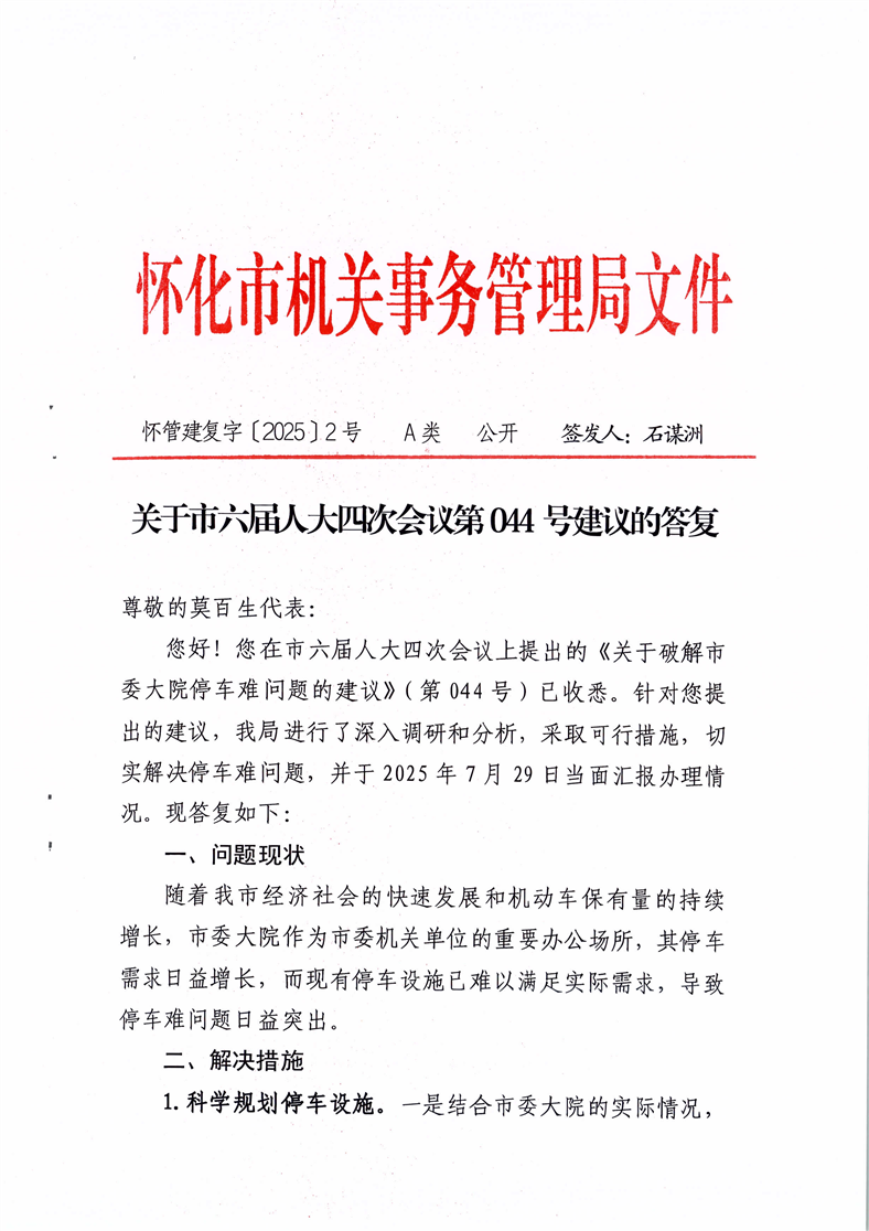 關于市六屆人大四次會議第044號建議的答復