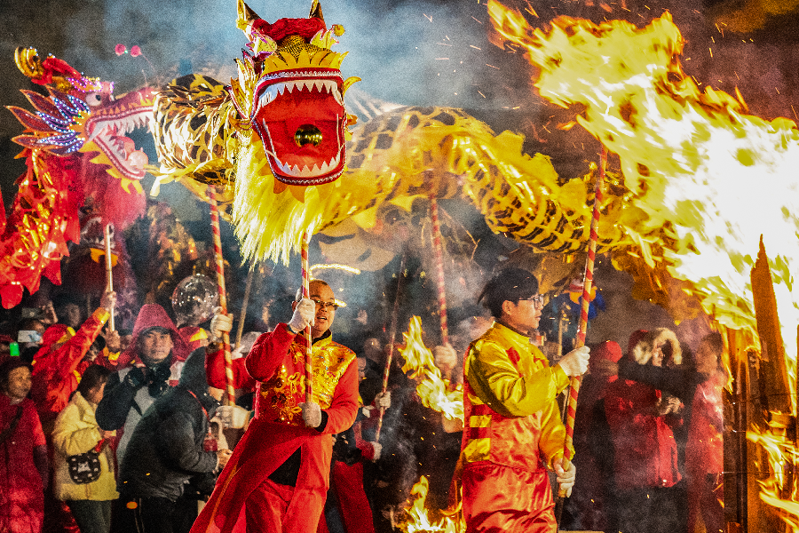 3月3日,元宵節(jié),湖南懷化洪江古商城鑼鼓鏗鏘、人聲鼎沸,“洪福洪江年·小城過大年”系列活動“元宵喜送龍”熱鬧舉行。